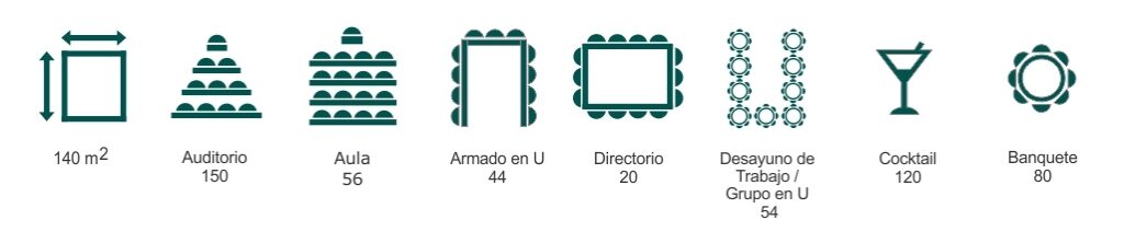 Nuestra Sala Jardín es ideal para eventos en los que se desee tener un acceso directo al predio y barbacoa del hotel. Principalmente recomendada para eventos descontracturados, donde se busque combinar los espacios al aire libre del hotel, con las facilidades de un espacio cerrado. La sala se adapta a los requerimientos puntuales de cada evento.