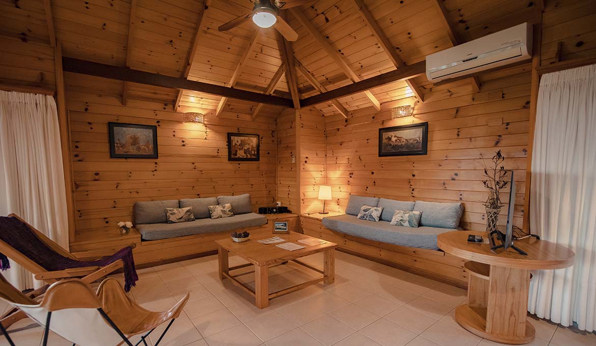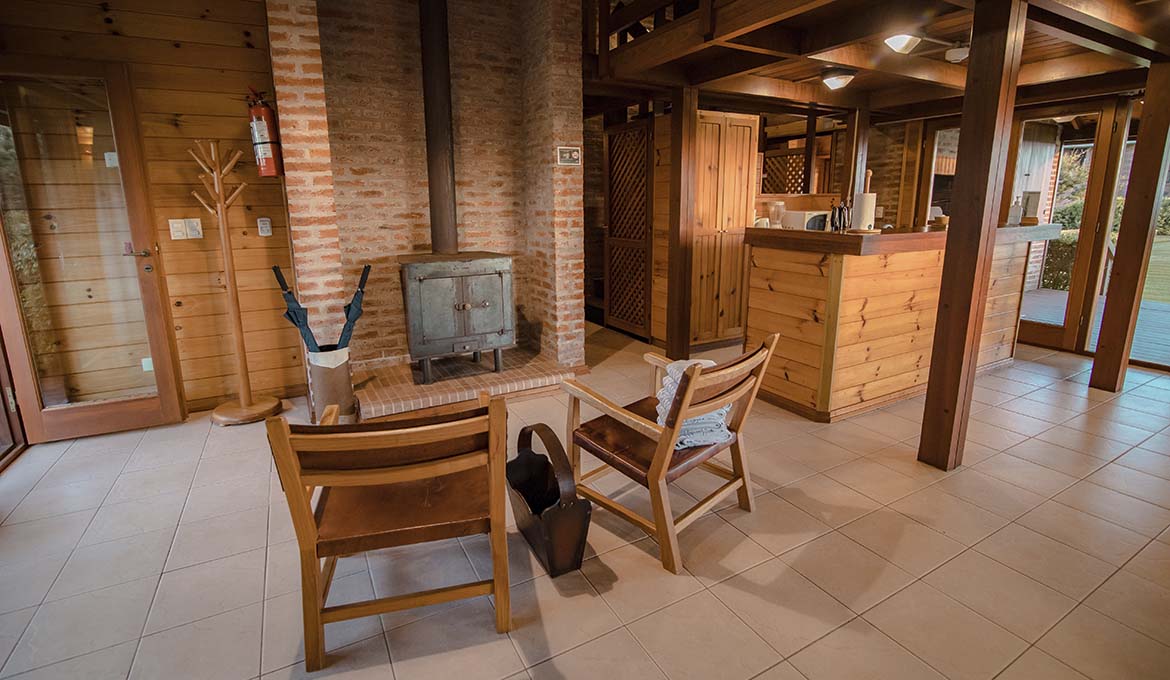 Sala de estar y comedor con salamandra a leña. Cocina integrada y equipada.