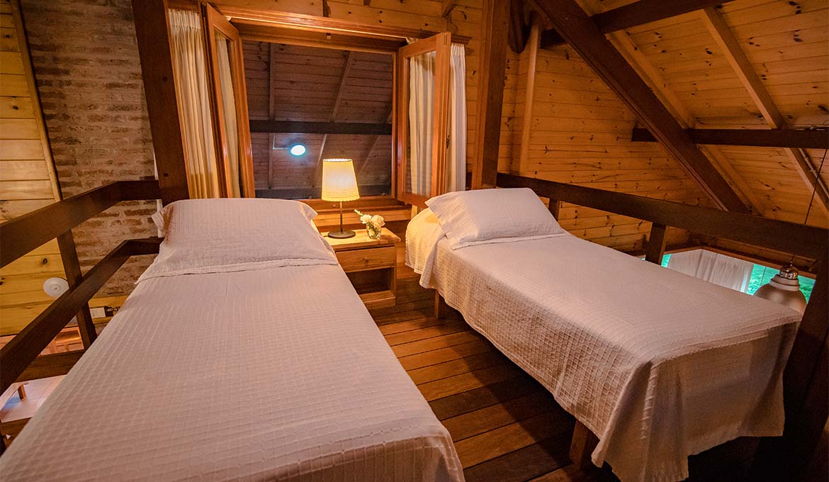 Dos habitaciones (una en suite) y un segundo baño. Entrepiso con dos camas.